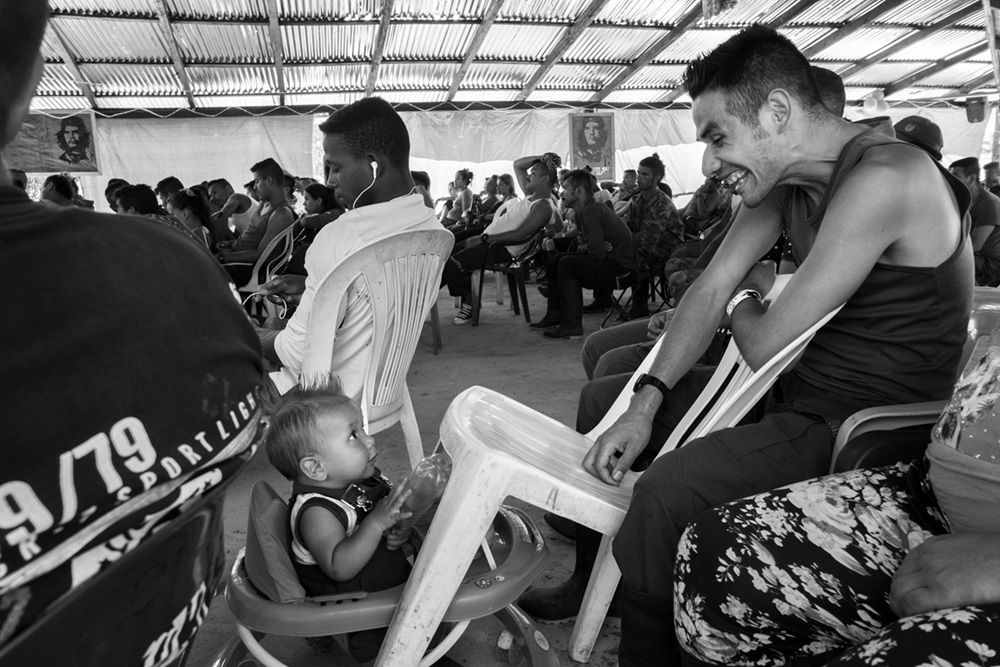 The images that have surfaced of FARC’s final days are mostly shot in color, but Linton’s eye turns to black and white in order to present a visual essay that is powerful in both its emotional empathy and compositional honesty. Linton’s photographs are more than a summary of a day in the life in a rebel camp; they are an enduring testament to the determination of a population that is emerging from a tropical jungle to reunite with estranged family and seeking the acceptance of the community at large.