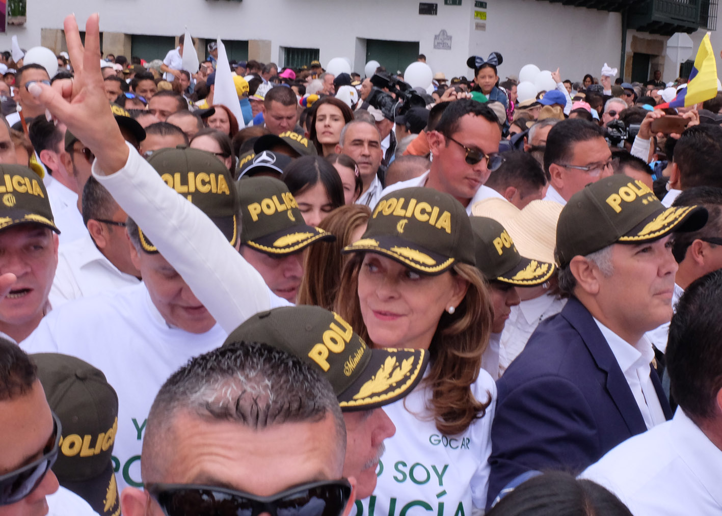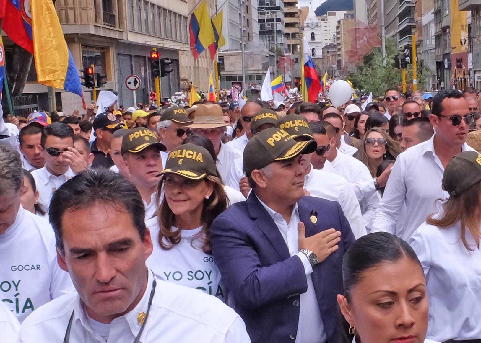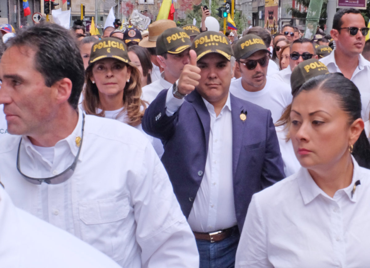 Colombians took to the streets Sunday to show solidarity to the National Police after a car bomb killed 20 cadets Thursday in Bogotá. Joining some 25,000 in the march towards Plaza de Bolívar, President Iván Duque was accompanied by First Lady María Juliana Ruiz and Vice-President Marta Lucía Ramírez. The city’s most important square has a capacity of 50,000 people.
