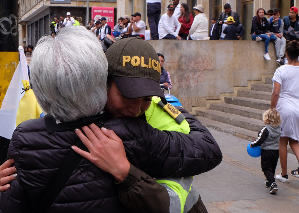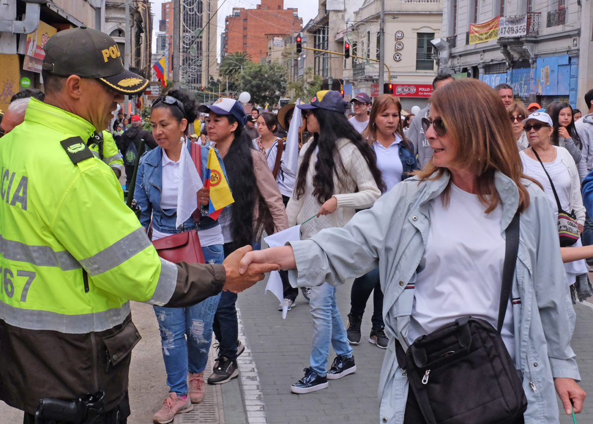 Members of Colombia’s security forces lined major streets such as the Carrera Séptima as people from all walks of life participated in the march to commemorate the cadets who lost their lives in a brutal attack by the country’s ELN guerrilla, and saluted the men and women of the National Police, handing them flowers, taking selfies and expressing their heartfelt sympathies.