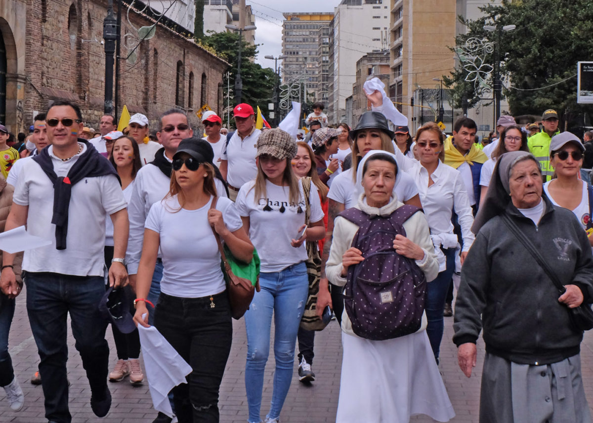 Similar marches took place simultaneously in other Colombian cities, including Medellín, Cali, Cartagena an Barranquilla.