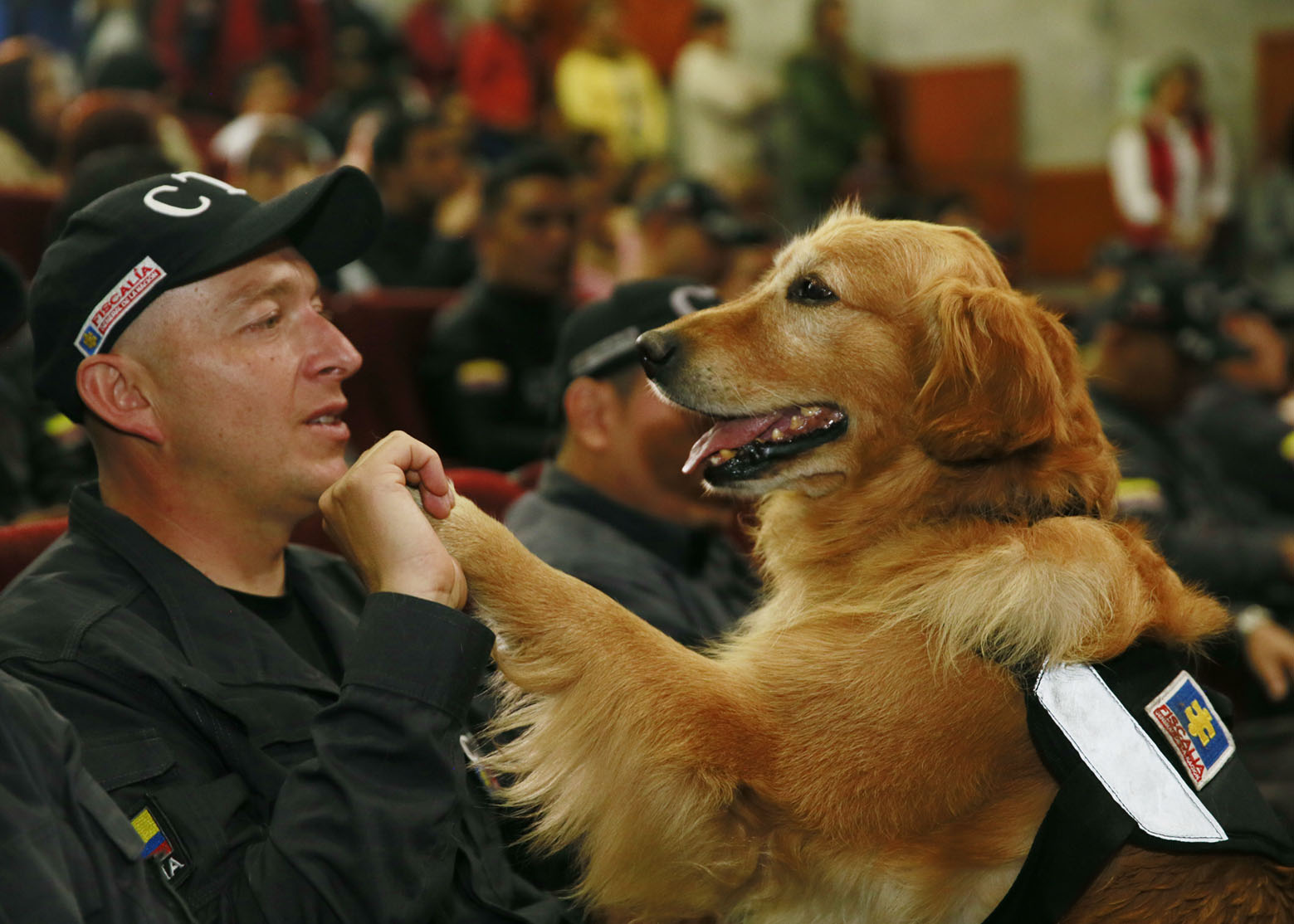 The country’s Deputy Attorney General, María Paulina Riveros, decorated the 14 dogs, and their respective instructors, assigned to judicial entity’s Canine Group. The group counts with 90 dogs and is responsible for operations that include drug trafficking interdiction, dismantling organized crime networks, and searching for missing persons. Among the dogs reaching retirement was Max, who recently led the rescue to find the bodies of the three Ecuadorian journalists killed by the ex-FARC dissent, alias ‘Guacho.’