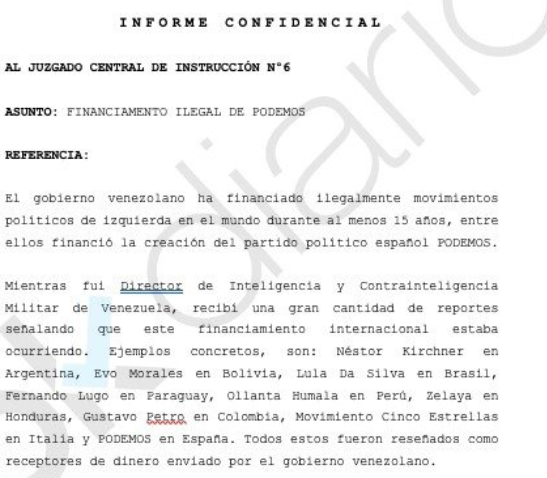 Carvajal handed-over to the National Audience of Spain the “modus operandi” behind the campaign financing of Argentina’s Néstor Kirchner, Bolivia’s Evo Morales, Honduras’ Manuel Zelaya, Brazil’s Lula da Silva, Peru’s Ollanta Humala, Paraguay’s Fernando Lugo. According to the spy chief, couriers from Caracas delivered diplomatic pouches filled with cash. “All of them were identified as recipients of Venezuelan government money,” wrote Carvajal to judge Manuel García-Castellón.