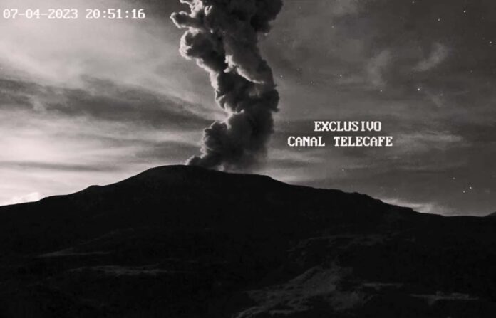 Capture of the Nevado del Ruíz's incandescent plume of ash on July 2, 2023. Credit: Telecafe