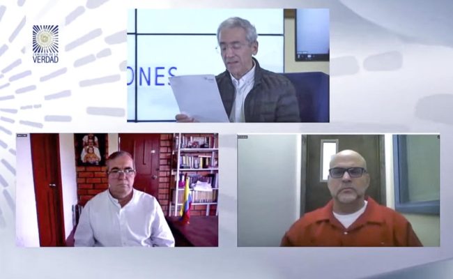 During a video conference ex-FARC's Rodrigo Londoño and former AUC warlord Salvatore Mancuso opened a honest discussion to respond to the victims of war atrocities.