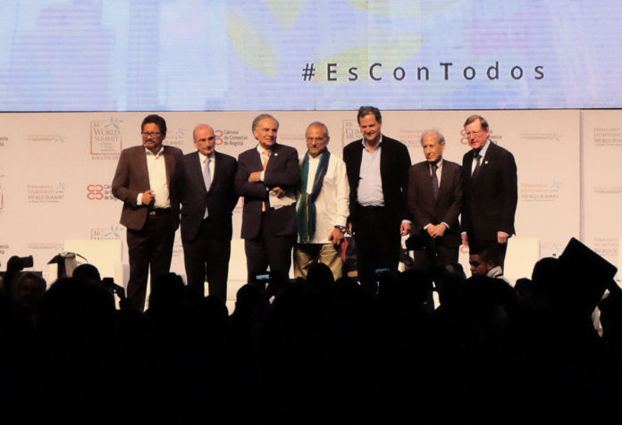 The government’s top negotiator Humberto De la Calle, the High Commissioner for Peace, Sergio Jaramillo, and the FARC’s chief negotiator Iván Márquez, whose appearance was not announced before the event, exchanged reflections on the four-year-long peace negotiations during a panel discussion at the World Summit of Nobel Peace Laureates, an annual conference that is widely touted as the most important peacebuilding event in the world.