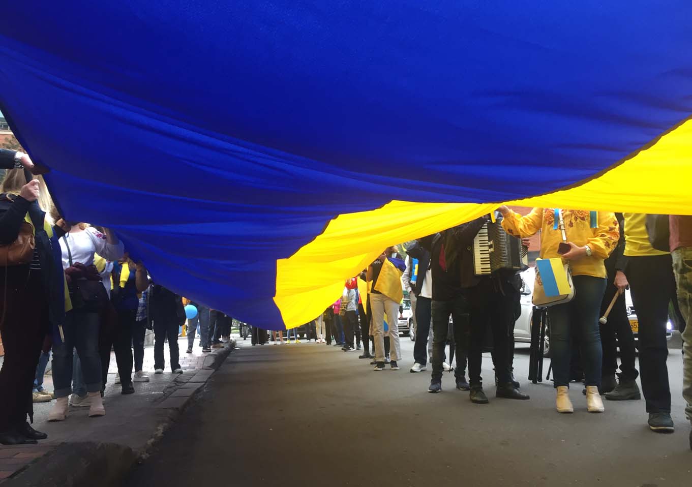 The Ukrainian community in Bogotá held a peacefully antiwar rally outside in the Russian Embassy, and one of many planned after Russia invaded the country.